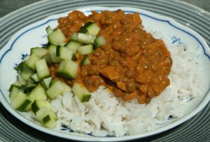 So I said that dahl (lentils) and rice was all I’ve been eating lately cause of my dodgy tummy, and that it wasn’t really blog worthy. Well, I have changed my mind. Mild lentil curries served with soft steamed rice must be my ultimate comfort food. I have eaten this combination in various forms for the last six days and am not sick of it yet. A friend came to visit me yesterday, so I decided not to deviate from my theme however just to make a slightly more sophisticated version.