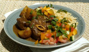 Remove the dish from the oven and allow it to cool with the lid on for a further 30 minutes before serving with saffron and almond couscous.