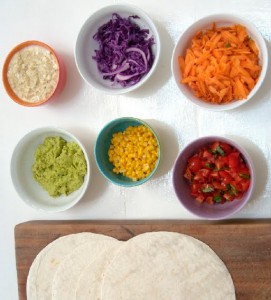 Lunch was wraps with a selection of fillings: hummus and cottage cheese; guacamole; blanched red cabbage, grated carrot; baby tomato and basil salsa and sweetcorn. My sister has raised her kids with a taste for healthy eating.