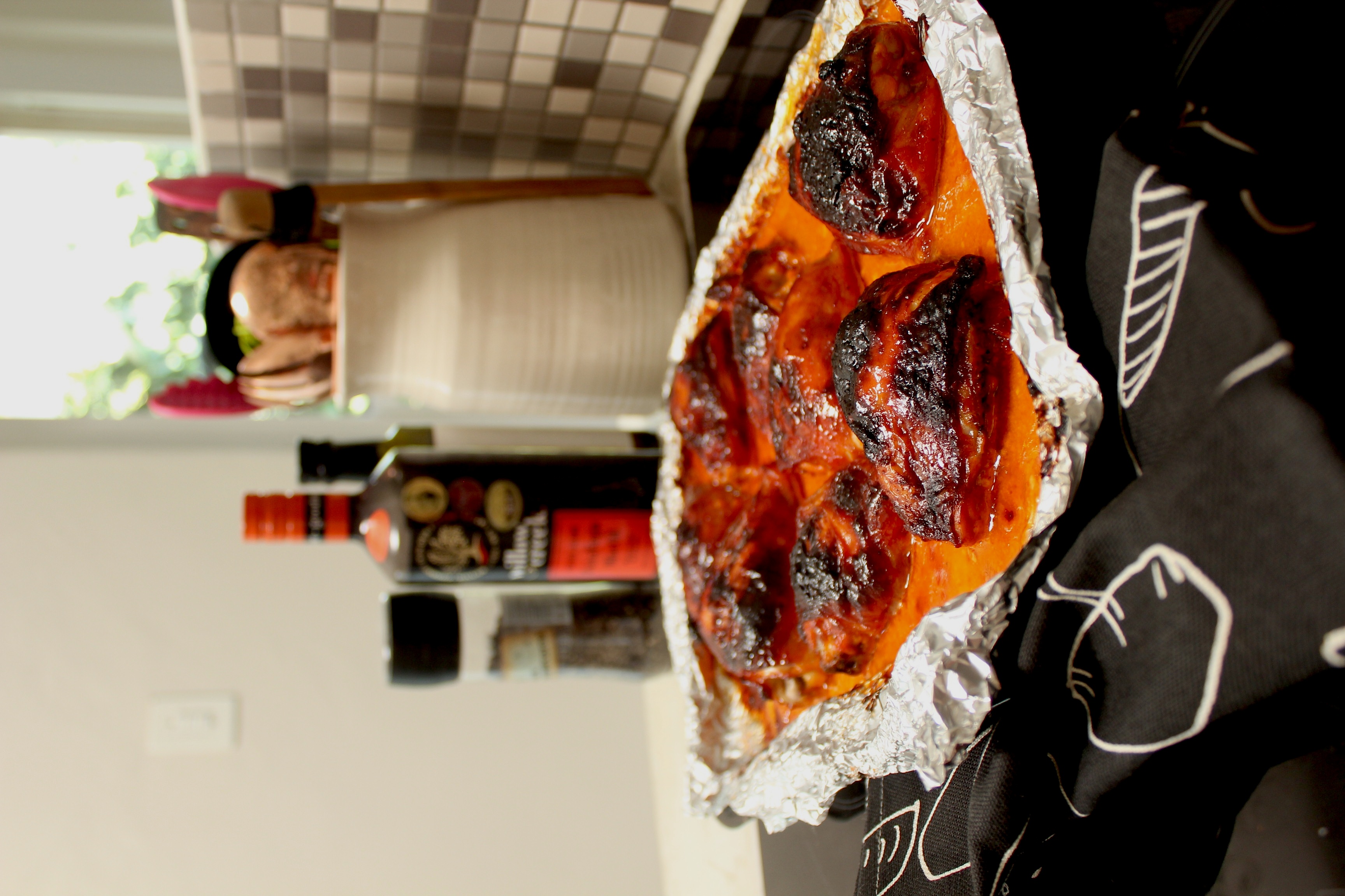 After removing the chicken from the oven, cover it with the lid or tin foil and allow it to rest for 10 minutes before serving and serve with your favourite veggies and starch.