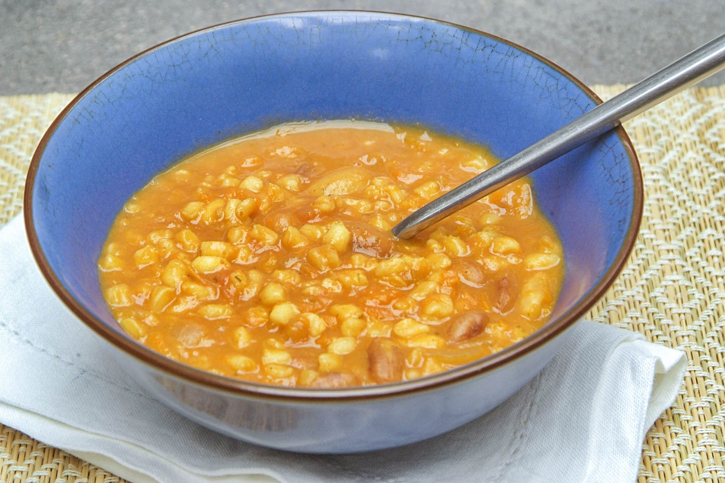 For a meatier version (find my recipe for a meaty samp and bean stew here), it would be ideal to brown stewing meat or chicken pieces with the onions and slow cook it along with the samp. Either way, this is a warming rich tasting stew which is as old as the South African people themselves.
