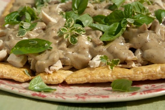 Open chicken and mushroom pie