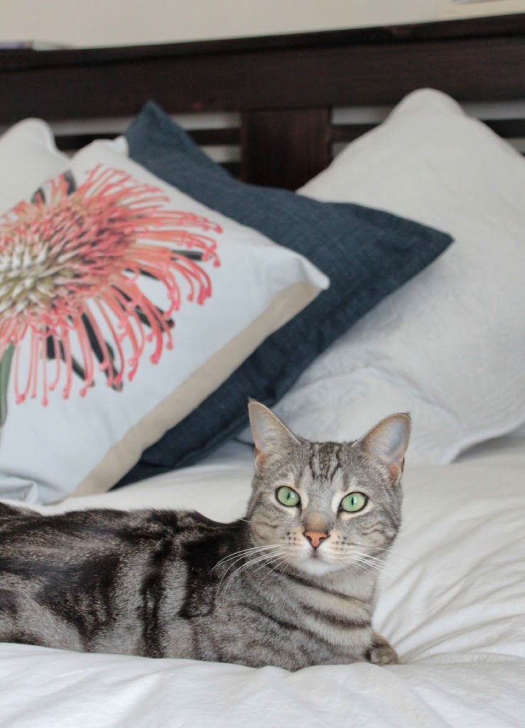 My gorgeous cat, Tara, chilling on my bed. Her sister was killed while I was away. So sad. |