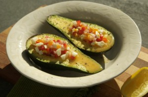 The filling can take numerous forms. Simply lemon juice, salt and pepper or the good old traditional shrimp and seafood mayonnaise, which seems to have had a revival since the 70’s. What ever way your favorite way to dress an avo is, it is a fruit which deserves center stage and this is my favorite way to do it.