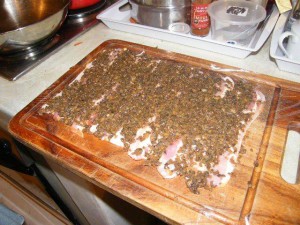 I was at Fruit and Veg on Roeland Street this morning and found Natural beech wood smoked streaky bacon from Joostenburg butchery. I LOVE Joostenburg pork butchery and am overjoyed that one can get their products at Fruit and Veg. If you are ever going out Stellenbosch or Paarl way – be sure and make a turn past Joostenburg. It also has a fabulous deli attached to its pork butchery too!
