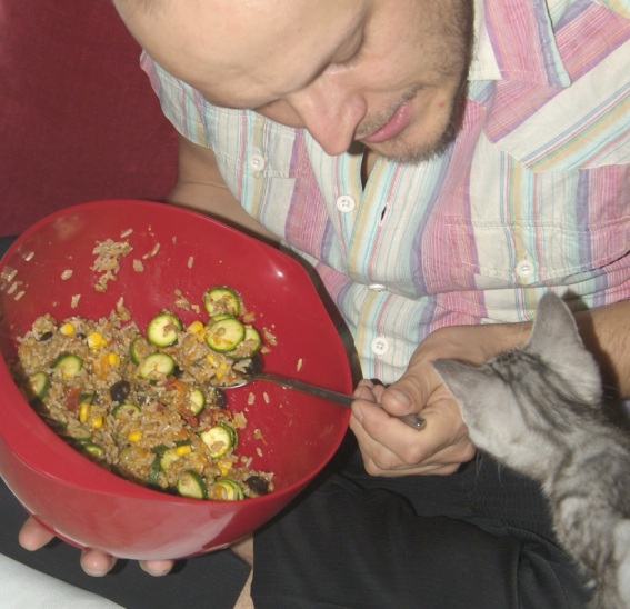 I keep a supply of rice with lentils or quinoa in the fridge so I have an easy meal waiting whenever I need it. I also often make that for Adam to take to work for lunch.