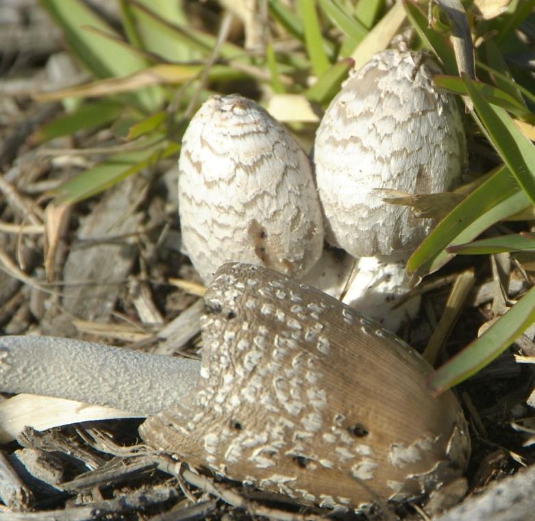 The Ink Caps one usually finds growing on lawns. We used to have some which would grow outside our front door under the Bougainvillea every year! My mom found some the other day growing on the side of the road and some on her neighbour’s lawn.