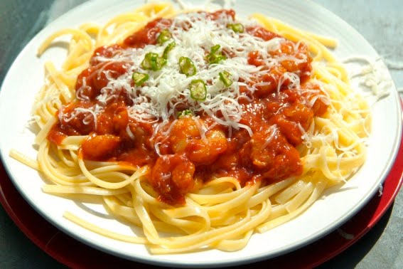 Start your pasta cooking. In a pan on medium high heat warm you pasta sauce, add you prawn meat and bring to a simmer. Cook for a few minutes until the prawns are cooked through. Set aside until ready for use.