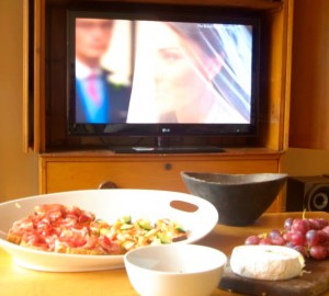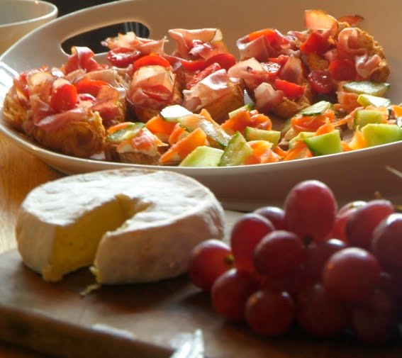 I had a bit of a rushed morning with errands and work, all of which needed to be finished before my date to watch the royal wedding at 12h00! I naturally wanted to have some nice snacks and bubbly to accompany the wedding watching but had neither the time nor inclination (after the last week of nonstop cooking) to prepare anything fiddly. So I popped past Giovanni’s, picked up some Parma ham, smoked salmon and Le Petit France camembert and few other goodies, popped past woollies to get rye bread, croissants, crackers, crème fraiche, grapes and mini lemon cheese cakes.